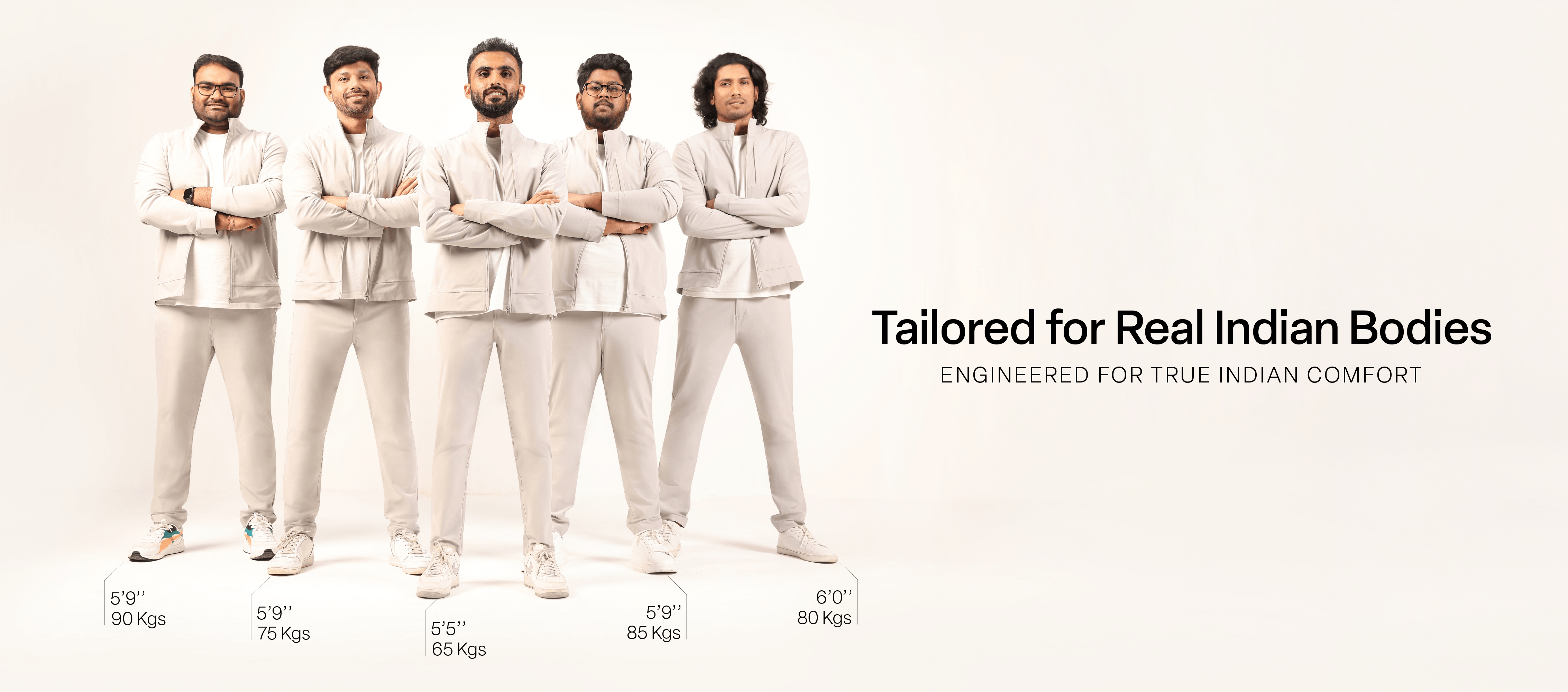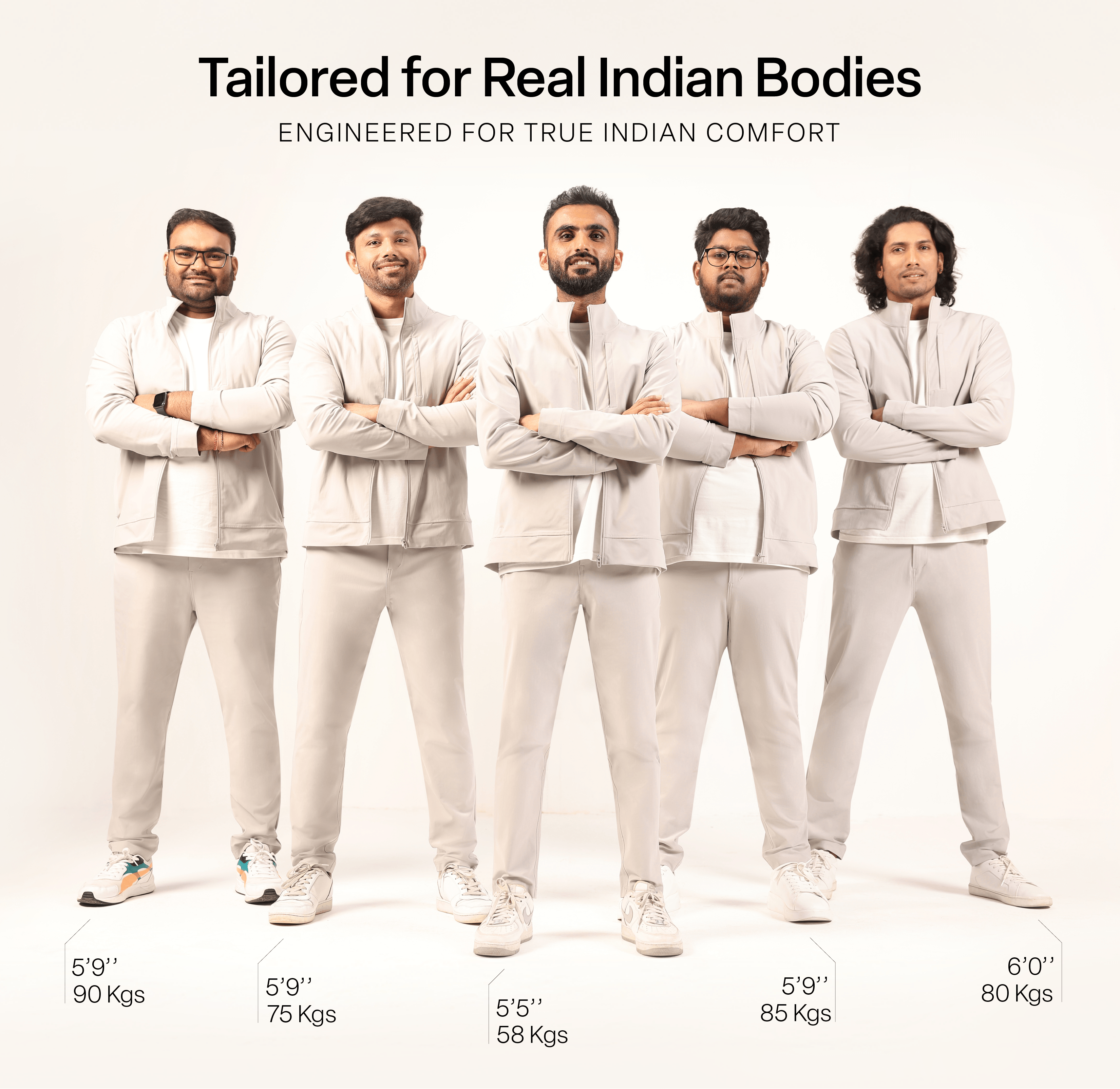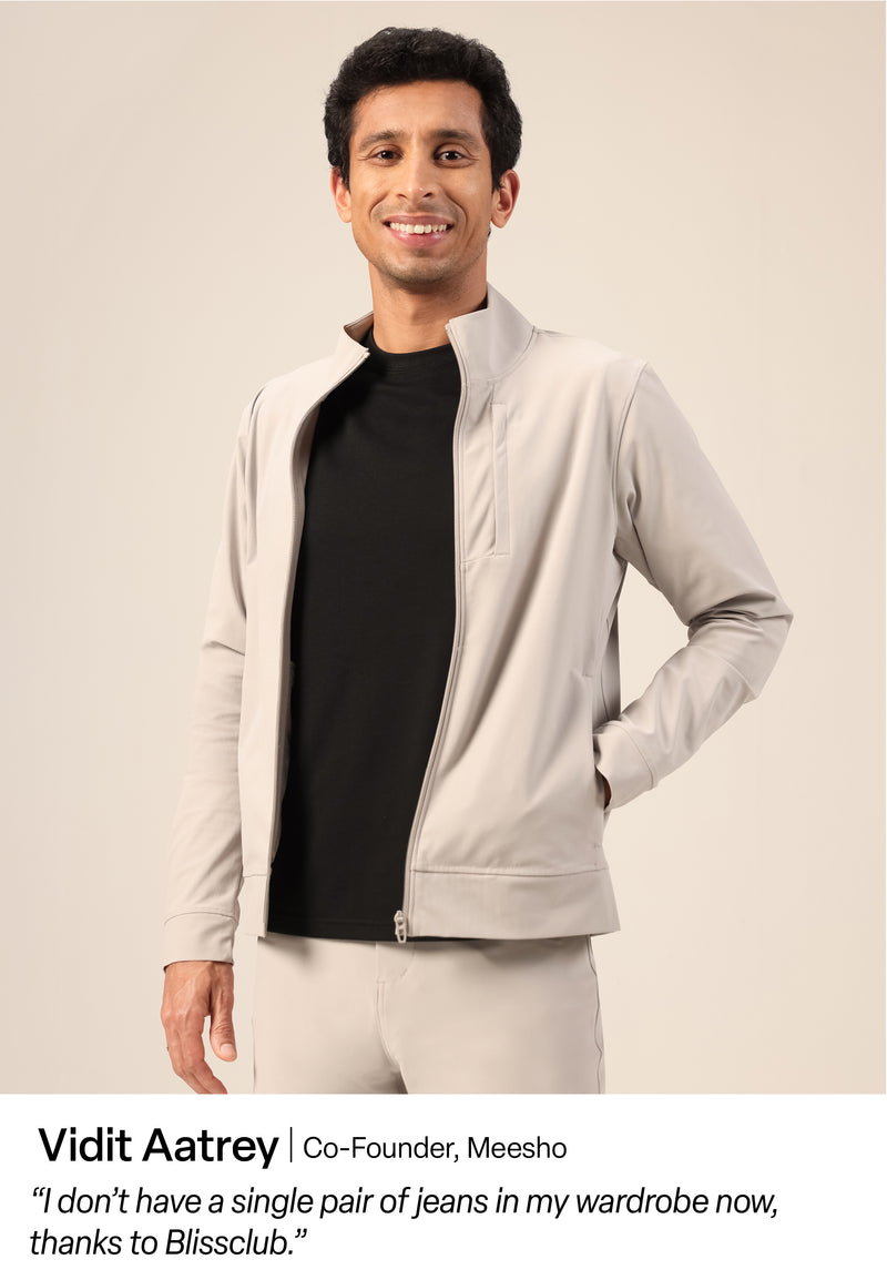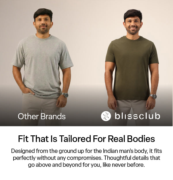 From day one, the idea was to spread happiness through movement to EVERYBODY. Our menswear comes from the same architecture of comfort and freedom. What sets us apart? The fabric, the fit, the function. Designed for the Indian man’s body, with thoughtful details, considered down to the last stitch.