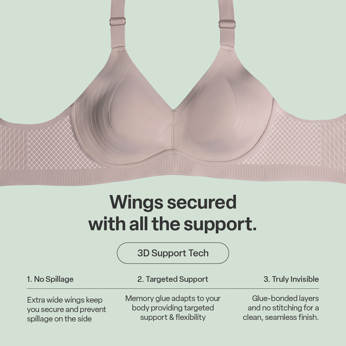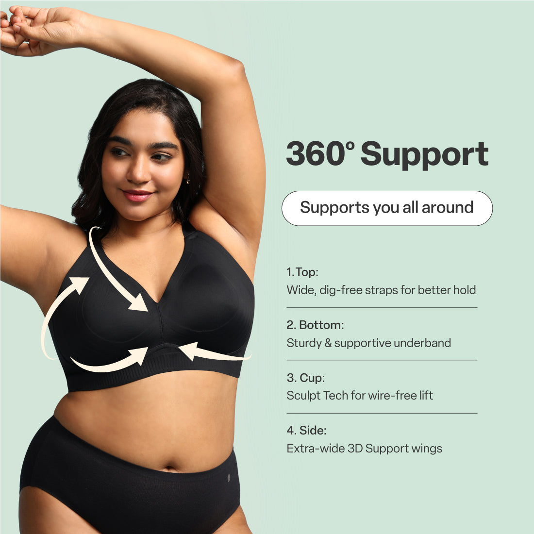 Because we built the ultimate wing woman for bigger boobs – the 360 Support Bra. Engineered with 3D Support Tech, here’s a bra built to fit and support you unlike any other bra you own. The extra wide wings and underband keep everything in place without a pinch. This bra’s got your back, literally.