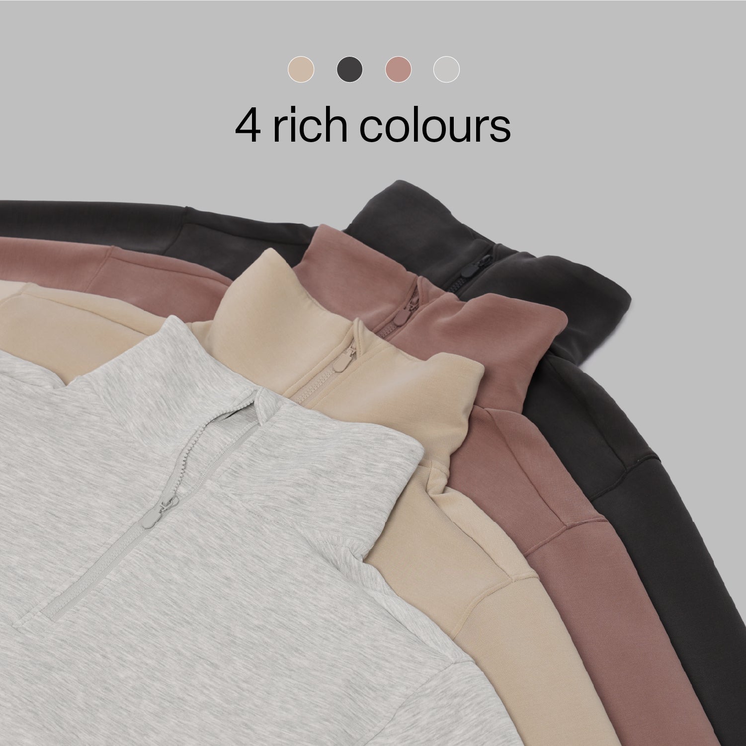 Where unmatched softness meets travel luxury. Introducing softness like never before with our BareButter iconic fabric. Wrap yourself in the plush softness, crafted from ultra-light, marshmallow-like fabric for a truly indulgent feel. Designed with a zippered high neck for versatile styling, full sleeves and marshmallow comfort, it’s as polished as it is plush. The perfect layer to take you from departure to destination in supreme comfort.