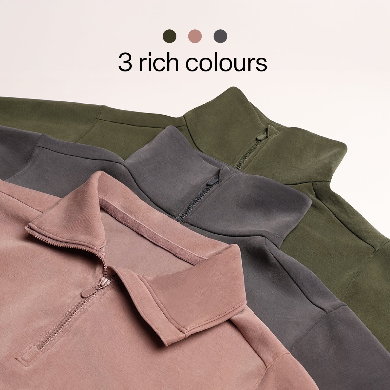 Where unmatched softness meets travel luxury. Introducing softness like never before with our BareButter™ iconic fabric. Wrap yourself in the plush softness, crafted from ultra-light, marshmallow-like fabric for a truly indulgent feel. Designed with a zippered high neck for versatile styling, full sleeves and marshmallow comfort, it’s as polished as it is plush. The perfect layer to take you from departure to destination in supreme comfort.