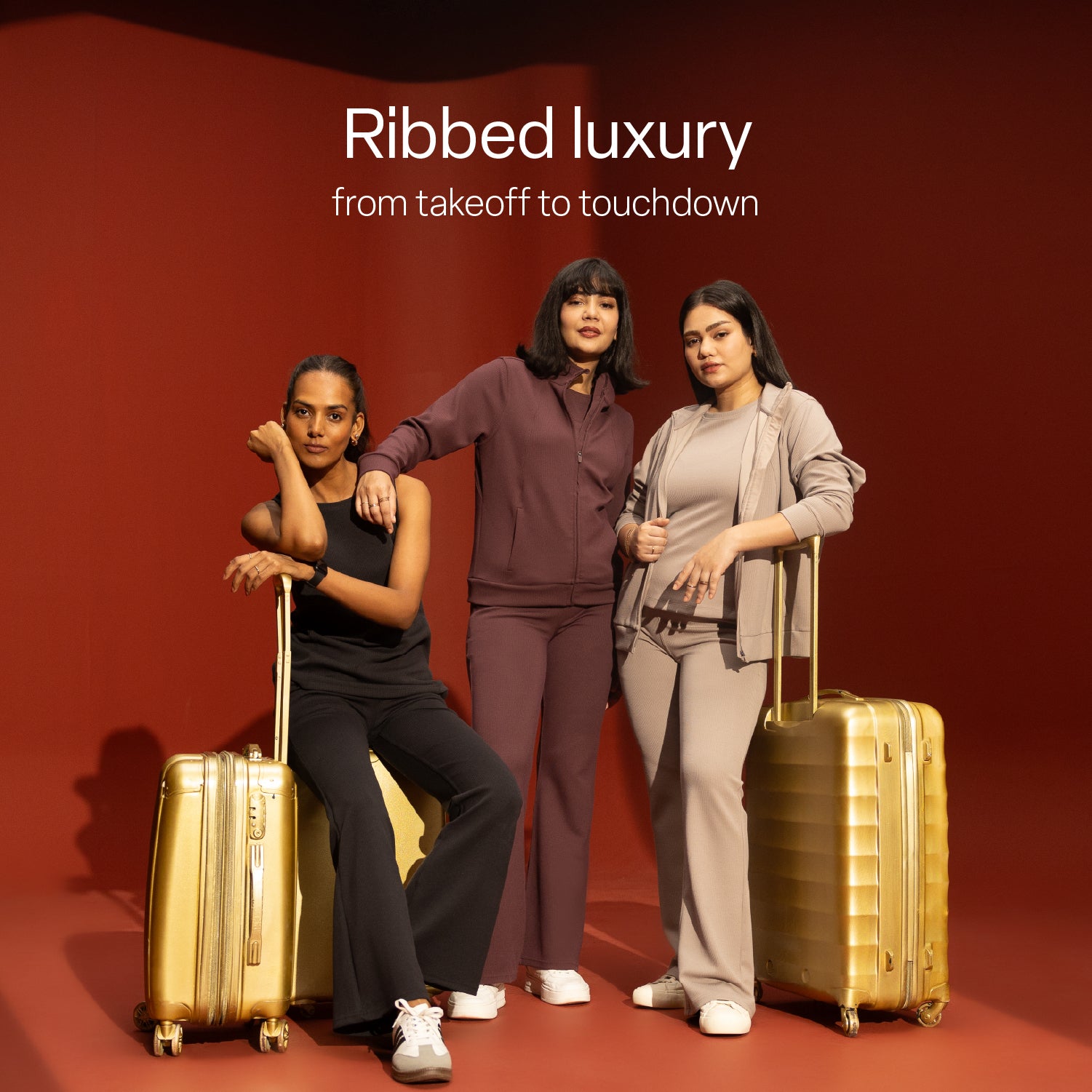 Crafted with our supreme ribbed luxury fabric, the RibSupreme™ Tank is your luxurious companion for travel. The elegant boat neckline and sculpting princess panels create a flattering, structured silhouette, while the ribbed texture makes it effortlessly stylish. It has have a soft inner lining made with modal for a friction-free travel experience. The luxe dual-plated fabric gives a stylish appeal yet ensures inner softness & stretch that retains shape The tank is your first-class ticket to comfort.
