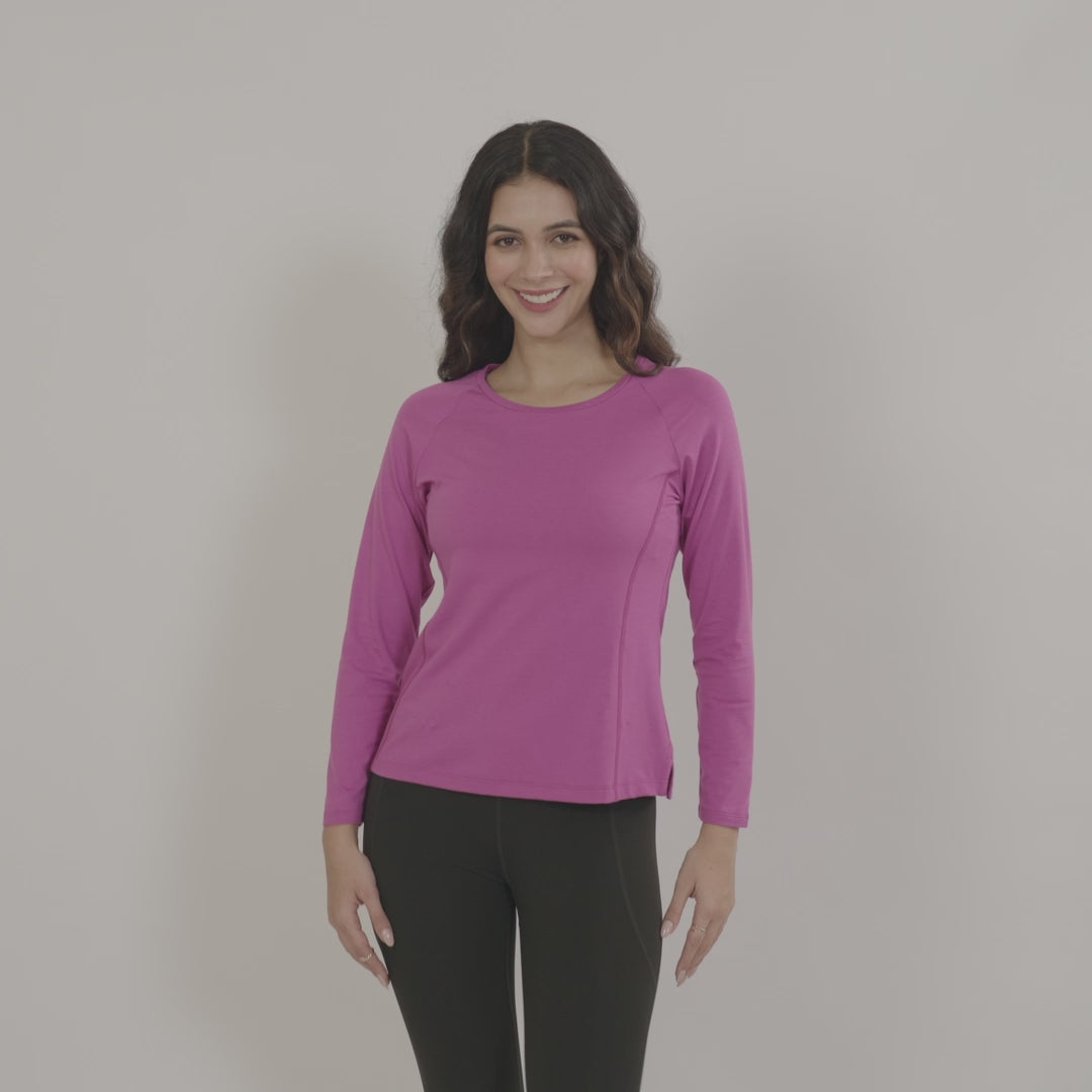 Enjoy your moves minus the distractions of itchy fabrics. Made using the world’s finest & rarest fibers - SUPIMA® Cotton & LENZING Modal - The Softest Tee feels like next to nothing against your skin. The full-sleeve design provides ample coverage, while the crew neck offers a relaxed yet stylish look.