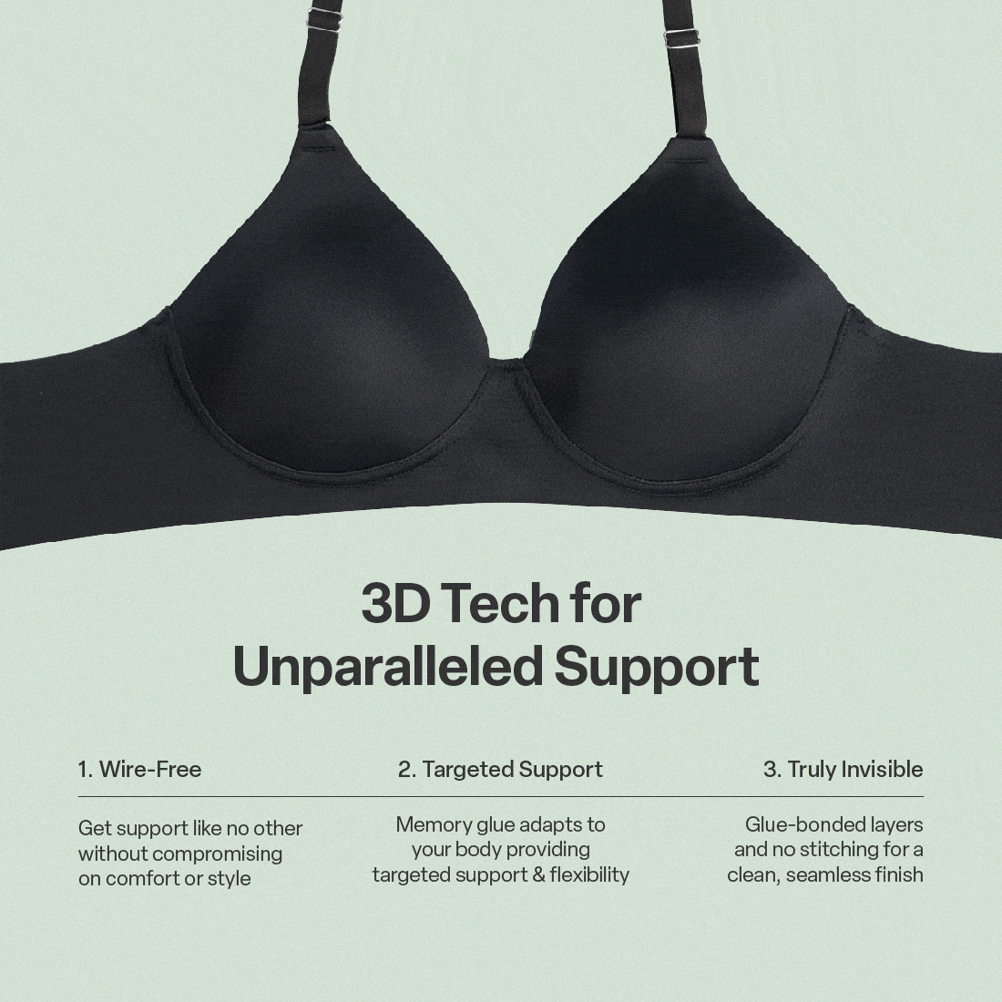 Because you deserve unmatched support and comfort — no wires attached! With our latest Tri-Zone Tech this bra is designed to give your boobs the support, lift, and shape they need without the digging underwires. The 3D Support Tech layer on wings gives added support, keeping your curves secure on the sides, back and underband. Ticks off all the right boxes, if we may say so ourselves.
