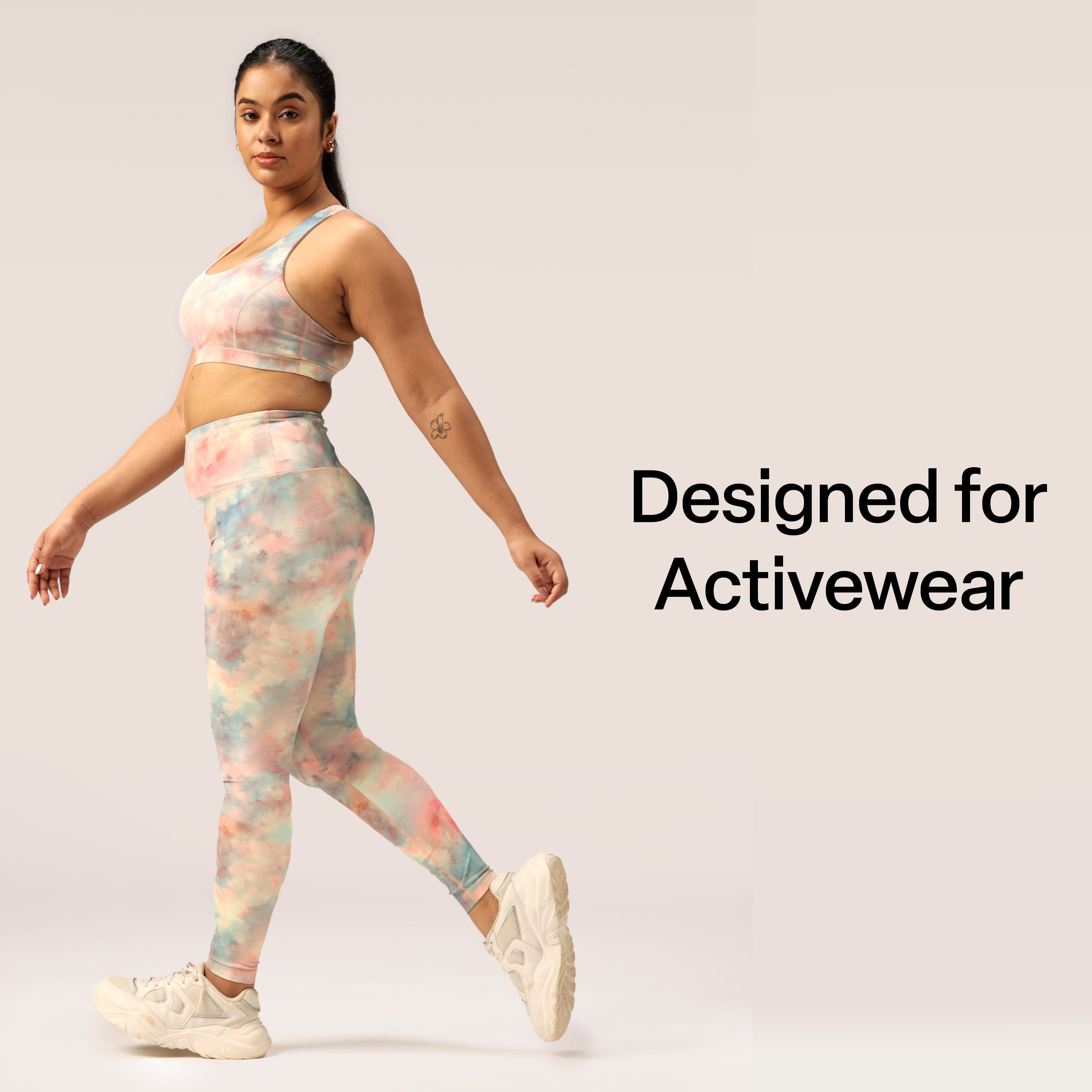 Wrap yourself in CloudSoft™ comfort with these printed leggings that move with you. The second-skin feel hugs your curves without restricting your motion, while the elasticated waistband keeps you secure through every stretch, step, or squat. A hidden back pocket keeps essentials close. Best paired with the Printed Sports Bra, it delivers a coordinated blend of comfort, performance, and style. Perfect for morning stretches, long walks, or moving through your day in effortless style.