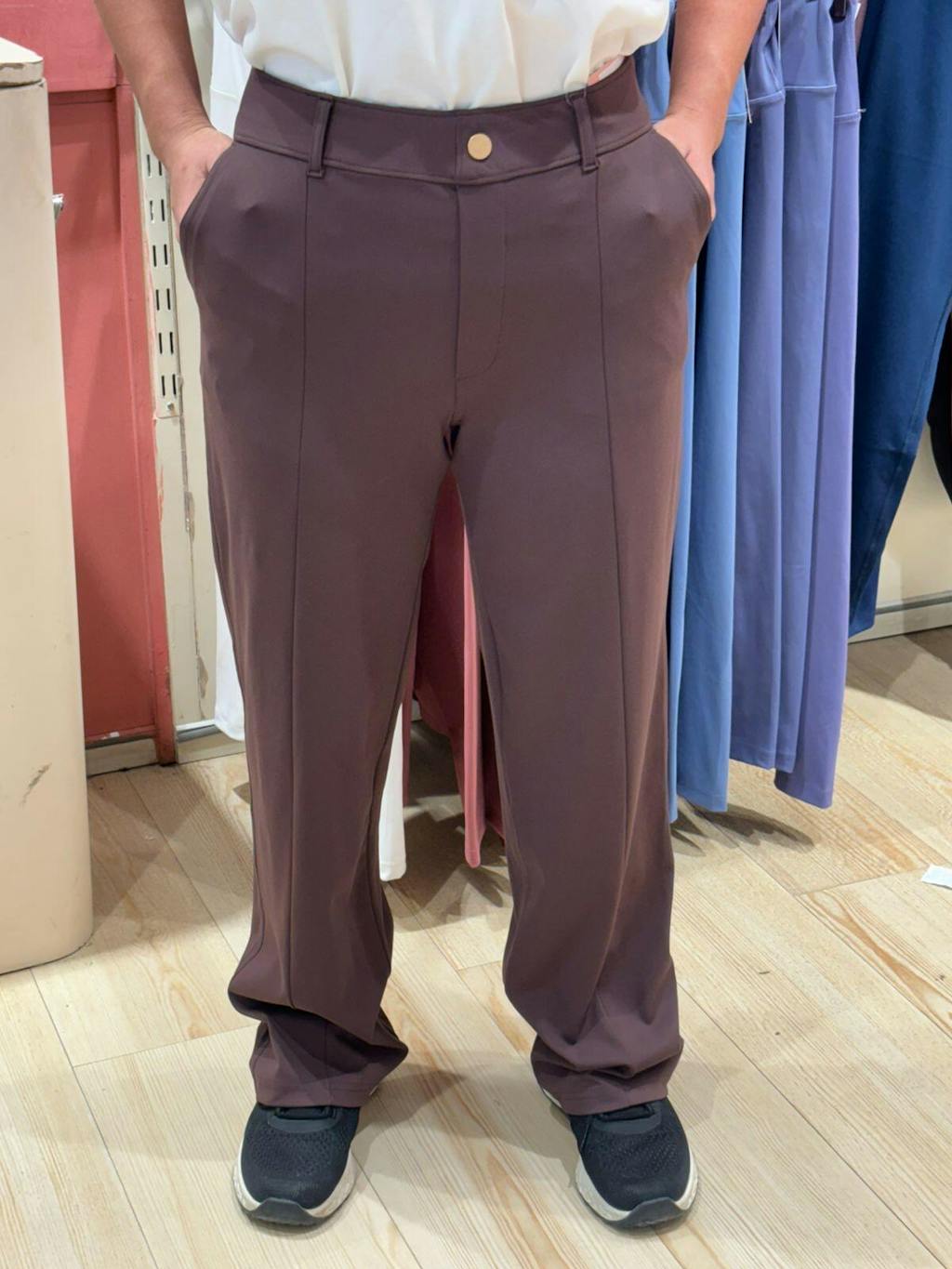 Meet the Ultimate Straight Tailored Trousers — workwear that looks sharp, feels softer, and moves with you. Made from our signature CloudSoft™ fabric, these trousers offer unmatched comfort with a lightweight, stretchy feel that’s anything but stiff. The straight-leg silhouette is clean, structured, and effortlessly refined. Thoughtfully finished with pintuck detailing, a sleek mock fly, belt loops, and a polished gold button for a tailored look. Functional side pockets are lined with mesh, keeping essentials discreet and outlines invisible. It’s a silhouette that holds its shape without holding you back.