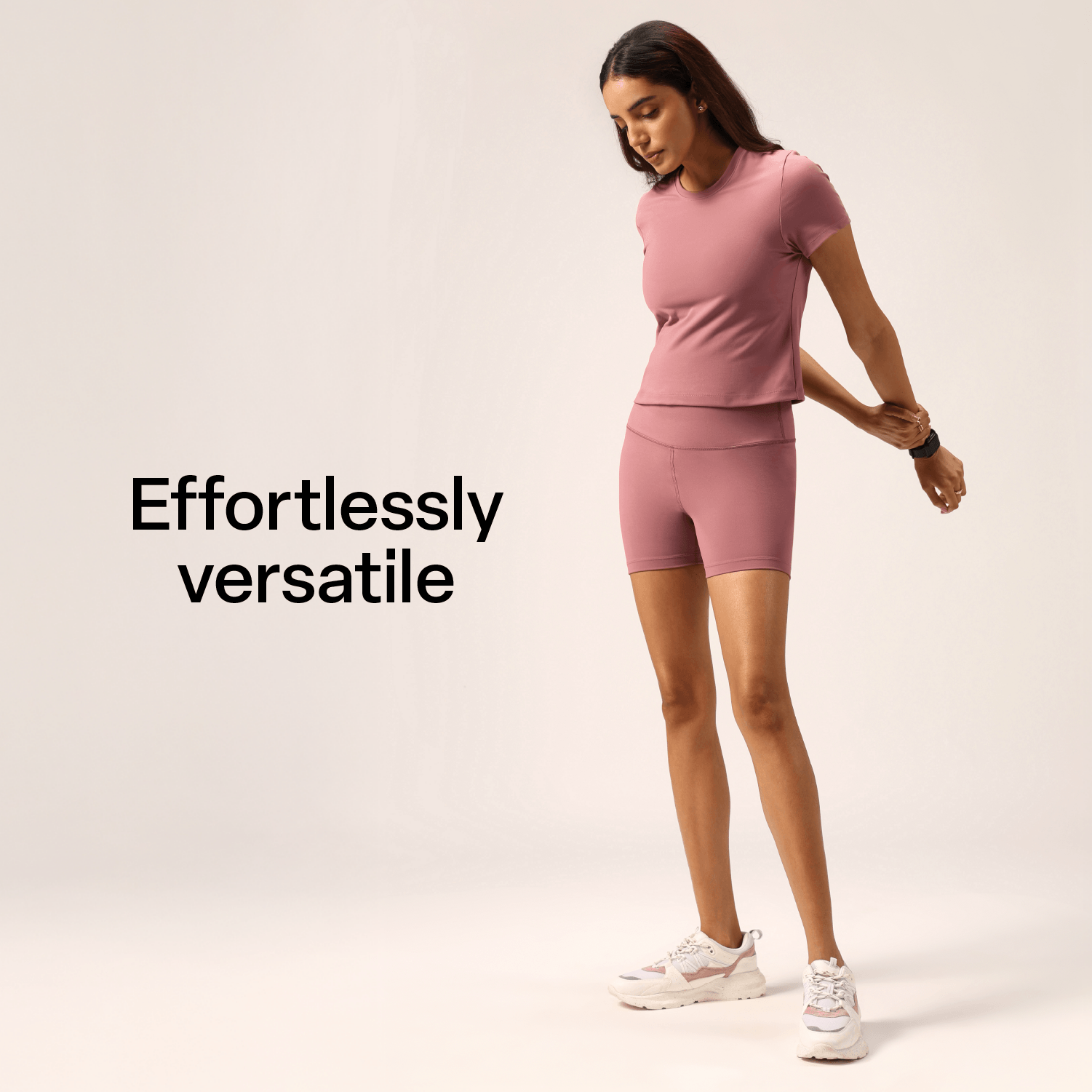 function from workouts to weekend. With a round neck, half sleeves, and a snug fit, this versatile top layers
